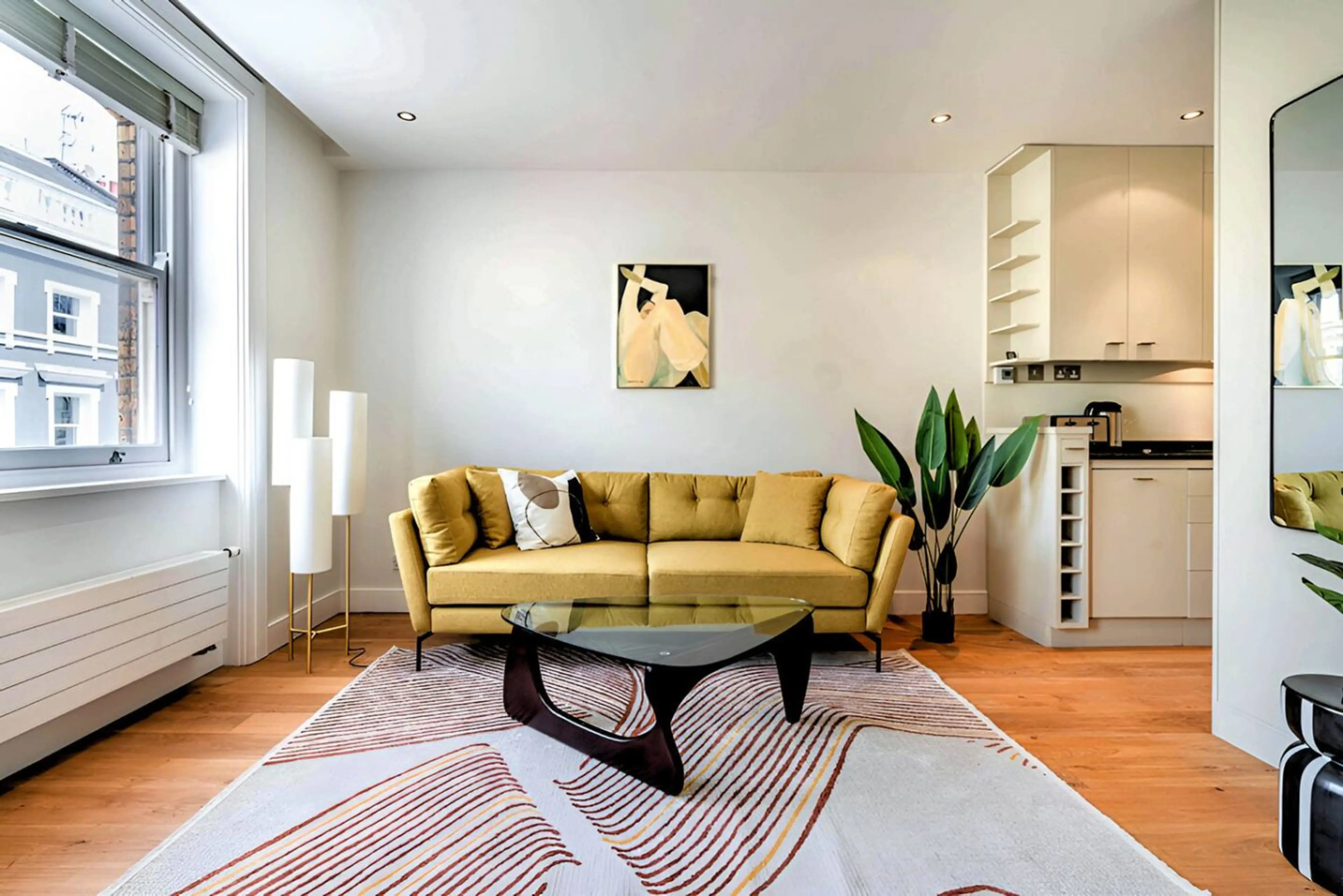A rare blend of historic charm and modern sophistication, steps from the Piazza yet blissfully peaceful inside. Dual-aspect views over Covent Garden Piazza and St Paul's Church courtyard. Open-plan kitchen and living area with high-spec finishes, king-size bed, and rainfall shower. You're in London'...